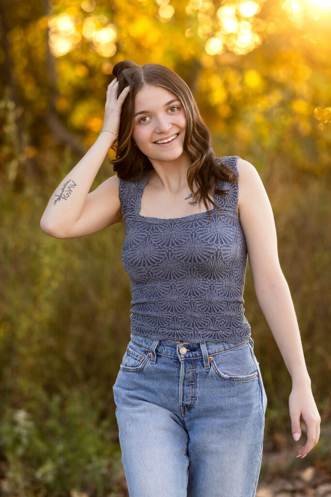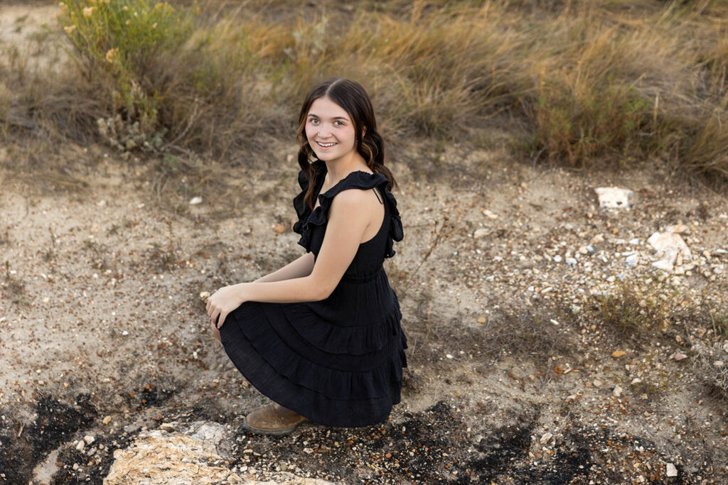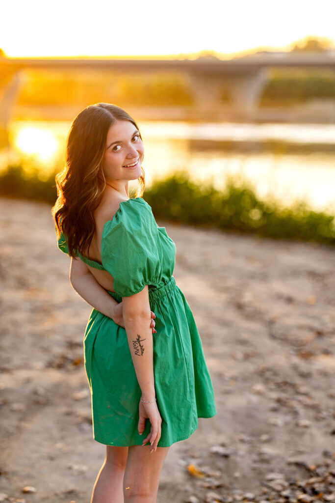 As we moved through Danyn’s senior session, we started with jeans & a tank top then she put on a black dress. Then, we pulled in pieces from my client closet like a yellow dress and later a green one. Each time, she made every outfit feel like it was completely hers.