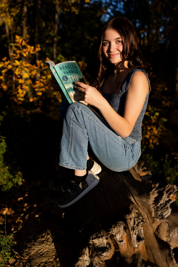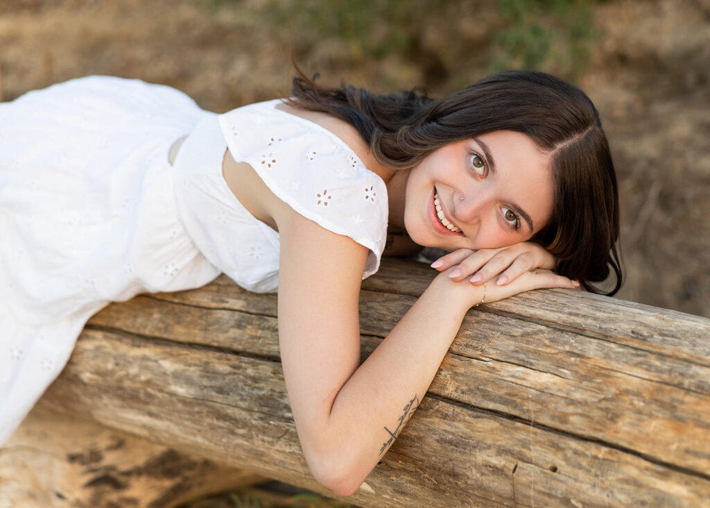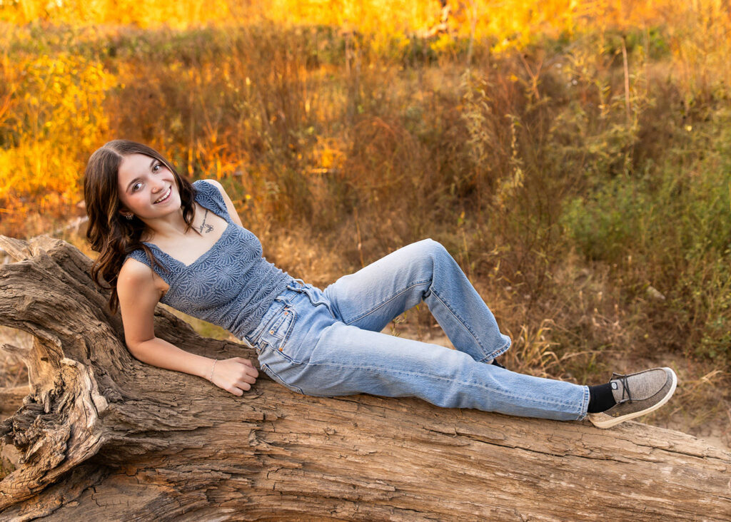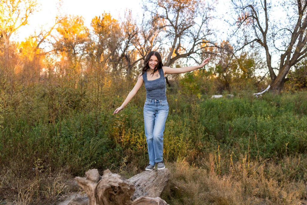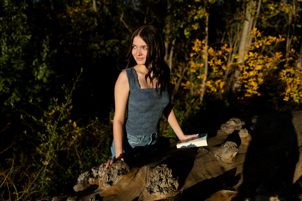 We ended Danyn’s senior session with her stepping into the water, standing on old logs, with the light dropping just right behind her. At that point, everything lined up without trying too hard.