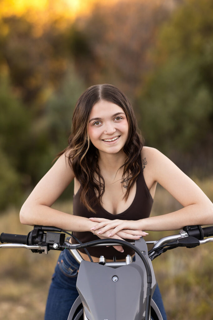 She brought her dirt bike along, and because of that, it immediately felt like such a natural part of her senior session. Nothing was forced or stiff. Instead, it was just her, doing her thing, with that easy confidence that didn’t need direction.