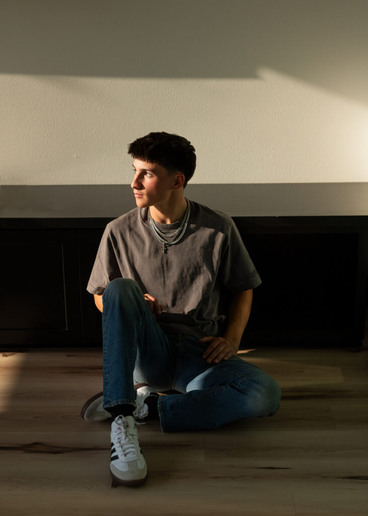 Last night was Eden Mortenson’s senior session, and we started in a place that already felt personal, Room 222, his mom Mechelle’s Airbnb.